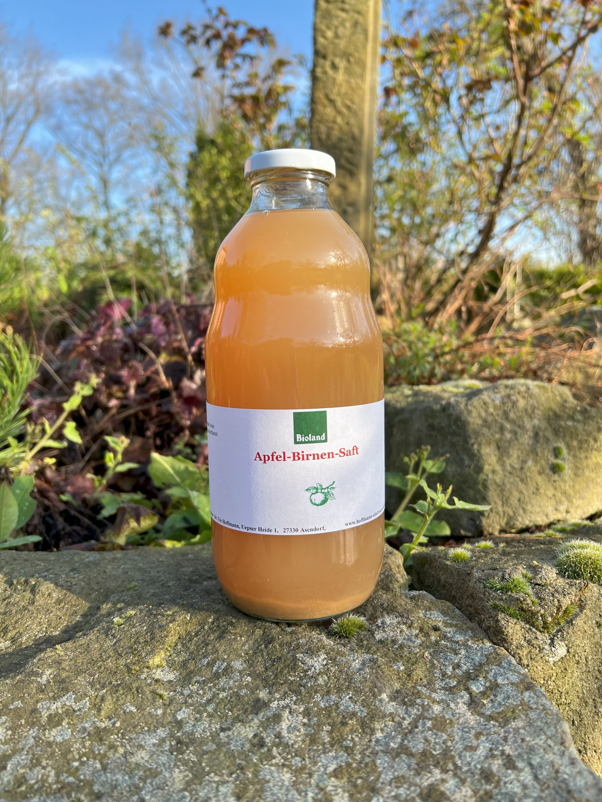 Mischung aus Apfel- und Birnensaft, naturtrüb, aromatisch, ohne Zusätze.
